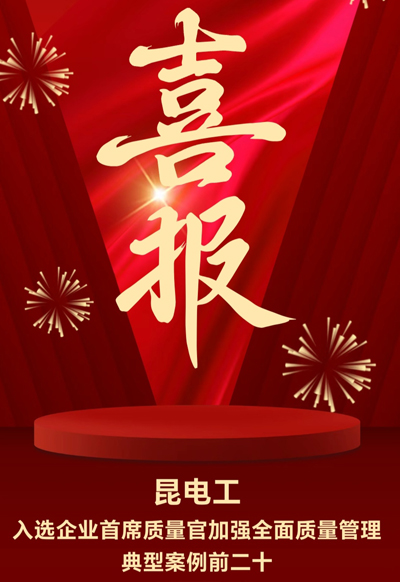 喜報-昆電工入選企業(yè)首席質量官加強全面質量管理典型案例前二十